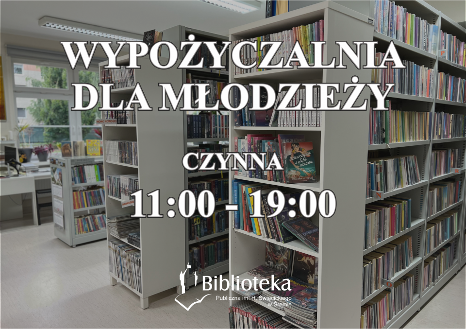 UWAGA! ZMIANA GODZIN OTWARCIA WYPOŻYCZALNI DLA MŁODZIEŻY
